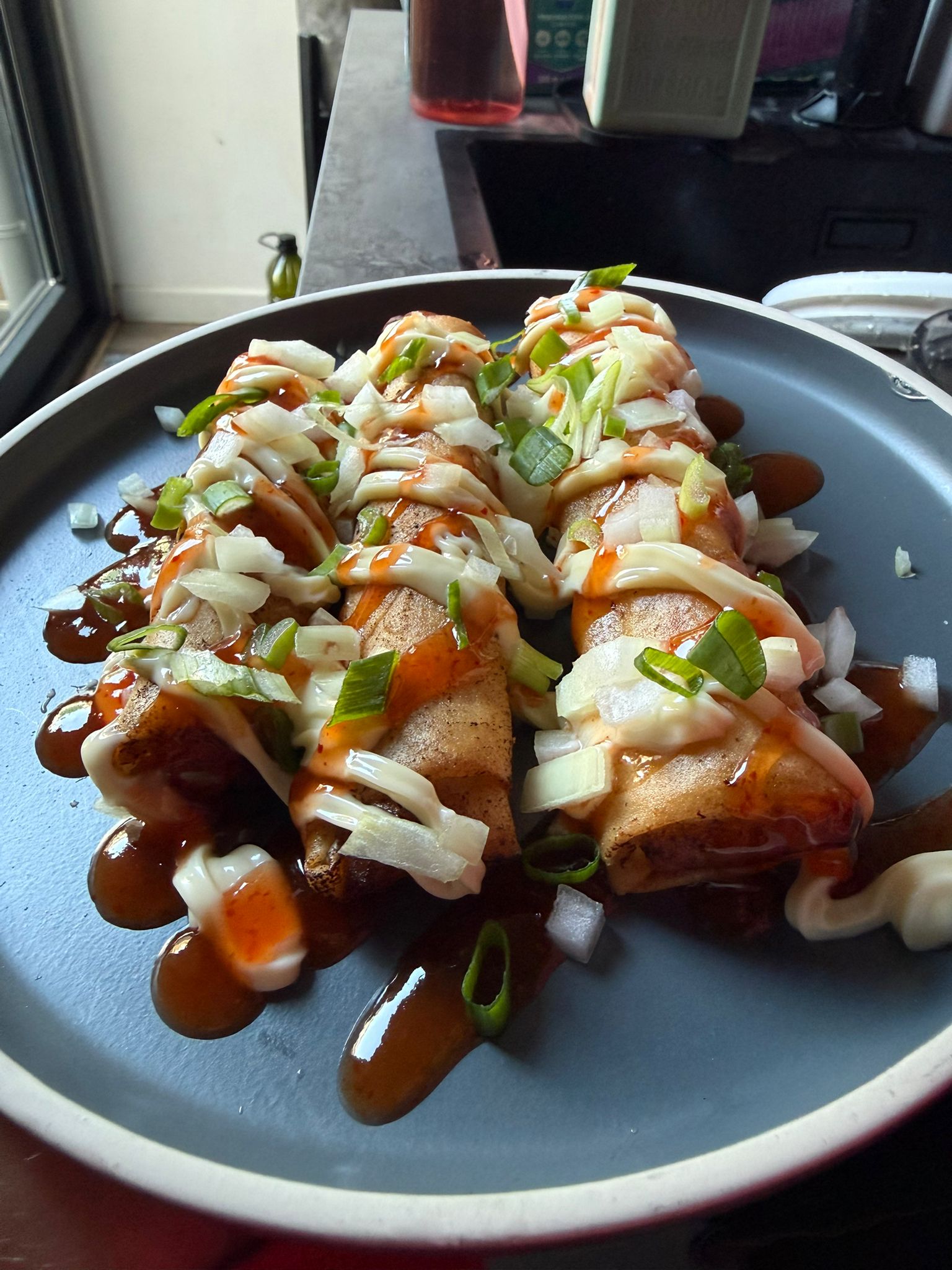 3 knapperige lumpia’s met romige mayo, frisse ui en chilisaus